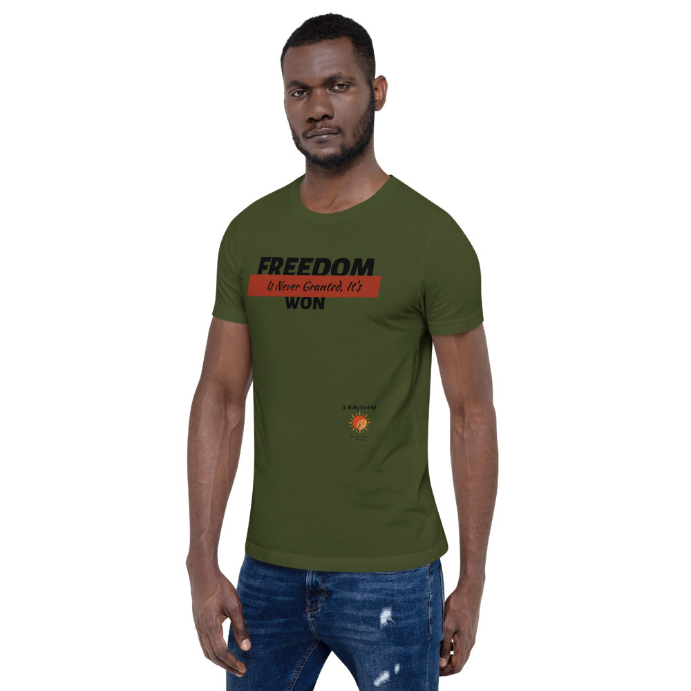 Freedom is Never Granted In White, Gray and Olive Short-Sleeve Unisex T-Shirt